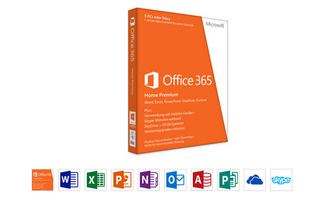 Sie und Ihre ganze Familie wollen mit einer professionellen Büro-Software arbeiten? Dann ist Microsoft Office 365 Home Premium genau die richtige Wahl für Sie. Lassen Sie Ihr Kind Schulaufgaben mit Word 2013 schreiben oder abwechslungsreiche Präsentationen mit PowerPoint 2013 entwerfen. Oder Sie führen mit Excel 2013 eine übersichtliche Haushaltsplanung die Möglichkeiten des Software-Bundles sind grenzenlos.Der große Vorteil dieser Version: Beim Erwerb dieses Abos erhalten Sie Lizenzen für bis zu fünf PCs oder Macs, sodass auch wirklich jedes Familienmitglied mit den Programmen von Microsoft Office arbeiten kann die zudem dank automatischer Updates immer auf dem neusten Stand sind.Ob mit dem Tablet-PC auf der Couch oder dem Computer im Arbeitszimmer: Arbeiten Sie von überall und jederzeit mit Word, Excel und Co. Sichern Sie dazu Ihre Daten online auf dem Cloud-Laufwerk mit den insgesamt 27 GB Speicherplatz von SkyDrive4.