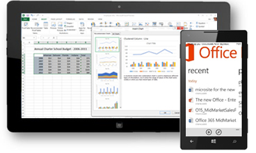 Auf Ihrem Computer ist immer die neueste Office-Version installiert, lizenziert per Abonnement. Office ist jetzt auch für Touchscreens geeignet und funktioniert deshalb auch sehr gut auf mobilen Geräten. Nutzen Sie Office on Demand (Office bei Bedarf), wenn Sie gerade nicht auf Ihre Geräte zugreifen können, indem Sie sich über einen Browser bei Office anmelden und schnell eine Office-Anwendung übertragen, in der Sie dann ohne Einschränkung Daten und Dokumente anzeigen und bearbeiten können.